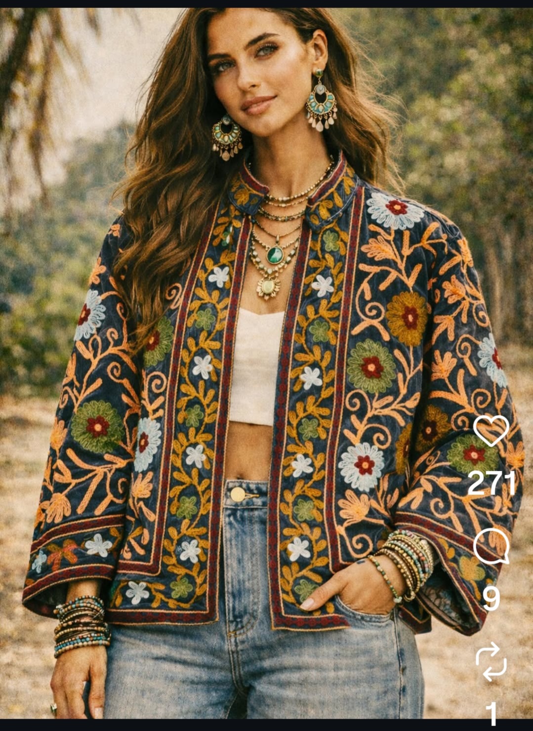 Chaqueta con estampados indios en tonalidades verdes y marrones